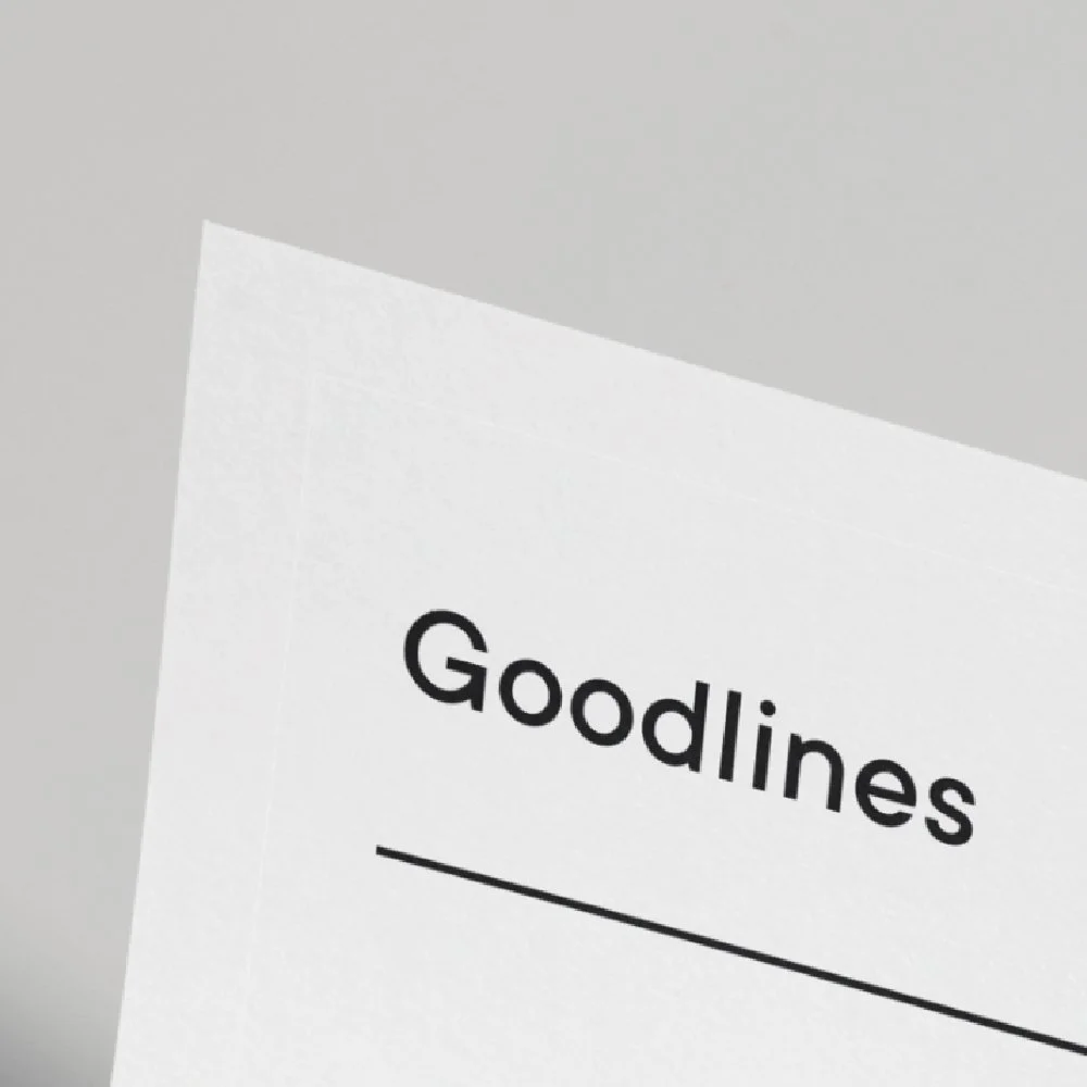 The Goodlines team created the brand identity for Goodlines, this included everything from the logo, to in-house stationery, to supporting graphics for application across both digital and printed assets.